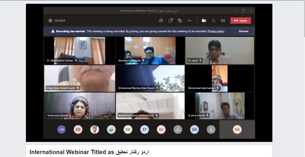International Webinar titled as “اردو رفتار تحقیق ” Day 2