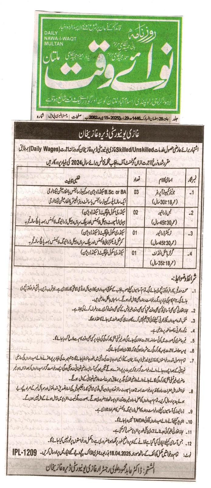 Career Opportunities on Daily Wages at Ghazi University, Dera Ghazi Khan