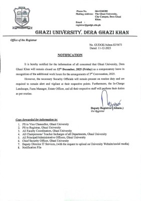 Keeping in view the heavy traffic on the online registration portal, the registration deadline for the 3rd Convocation has been extended from 06-12-2025 to 09-12-2025.